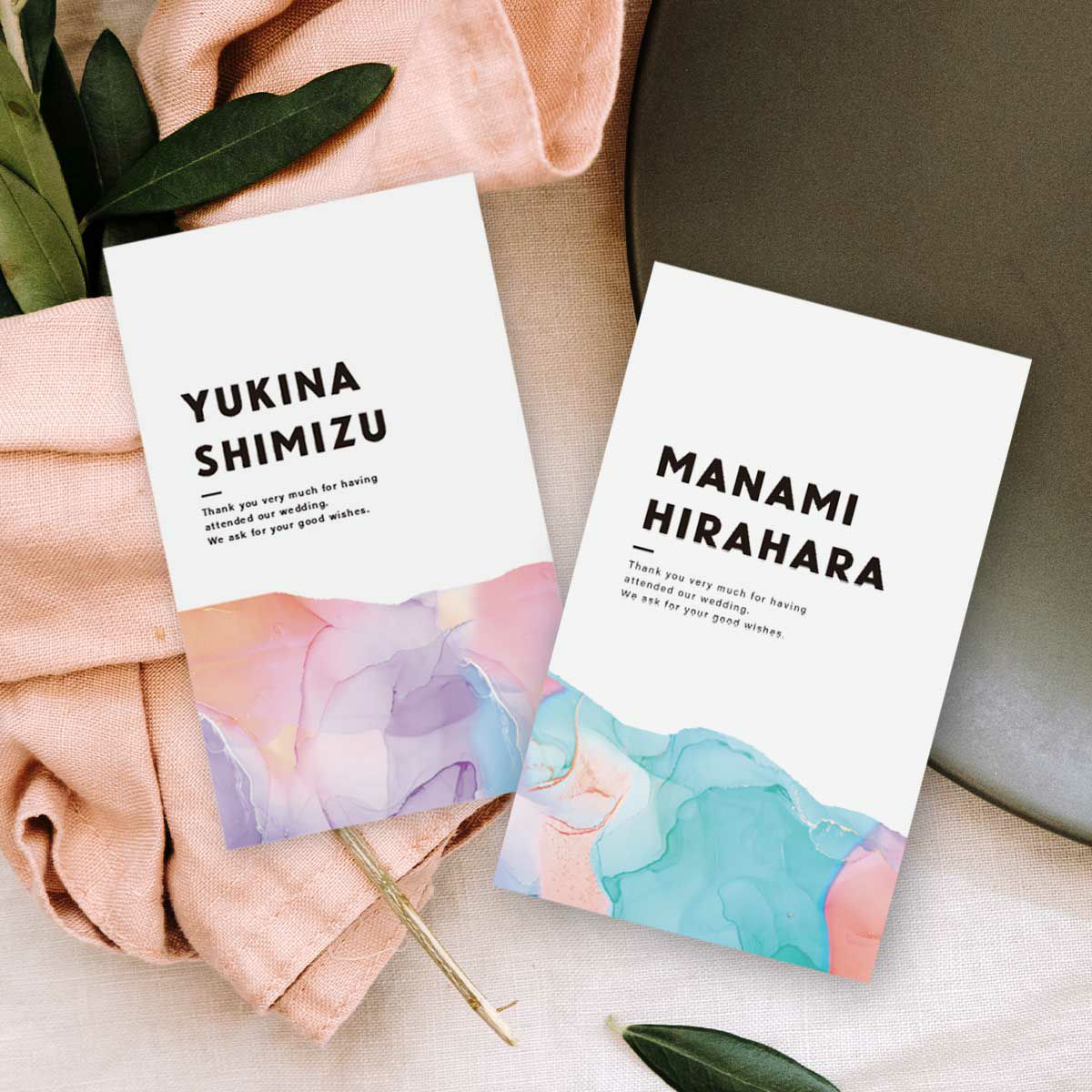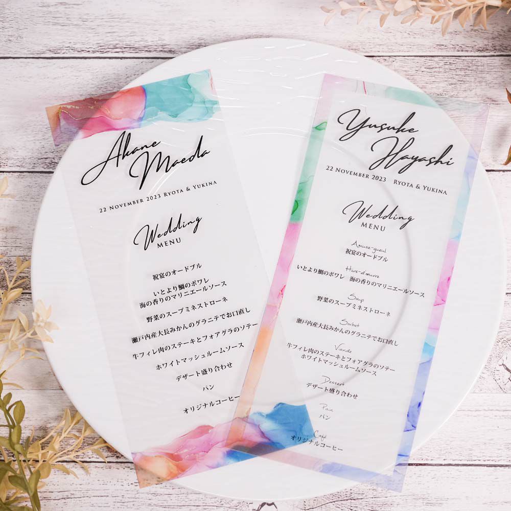 アルコールインクアートのデザインがおしゃれな席札とメニュー表