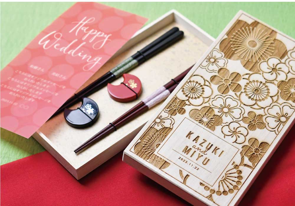 例えば、友人や同僚への結婚祝いといえば、新居で使ってもらえるようなお箸や食器などが人気ですよね。ただ、普通のインテリアショップで買う物だと、「結婚」という一大事をお祝いするのに少し特別感が欠ける気がすることも。ギフトモールなら、名入れやメッセージ入りアイテムが充実しているので、お祝いのメッセージやお名前を入れた結婚祝いを贈ることができます。もらった相手にも気持ちが伝わるプレゼントになりますよ。