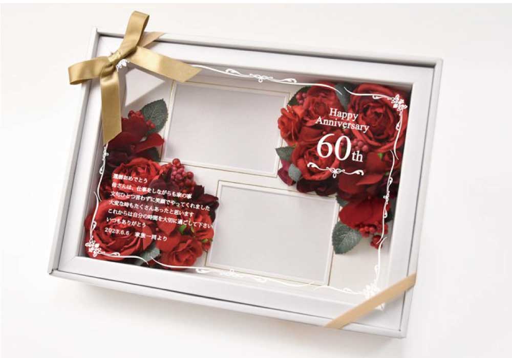 出典:お祝い・お礼ギフト「お祝い工房」還暦祝い60歳の贈り物!名入れフォトフレームフラワー