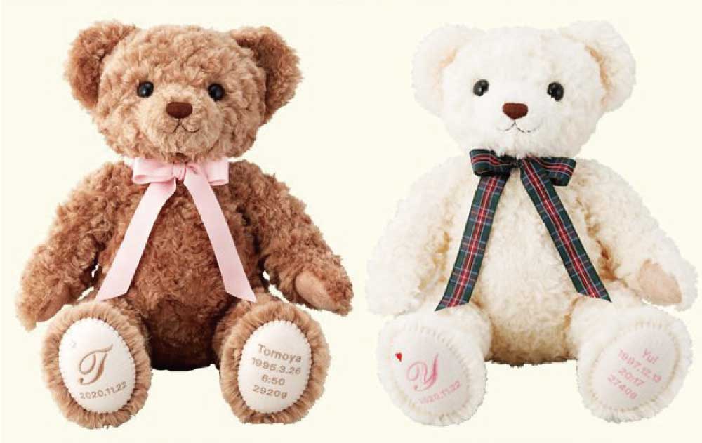赤ちゃんの誕生を記念したメモリアルギフトとして、体重ベアを作る方も多いようです。生まれた時の体重で作るベアは、誕生日やお名前などの刺繍も入れられて、お子様の一生の宝物になります。