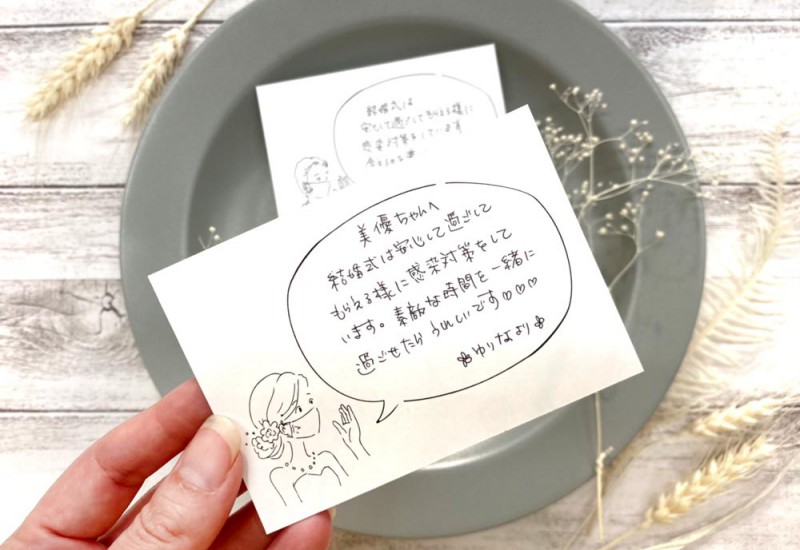 コロナ禍の結婚式で使える!マスク姿の新郎&新婦のメッセージカード見つけた!
