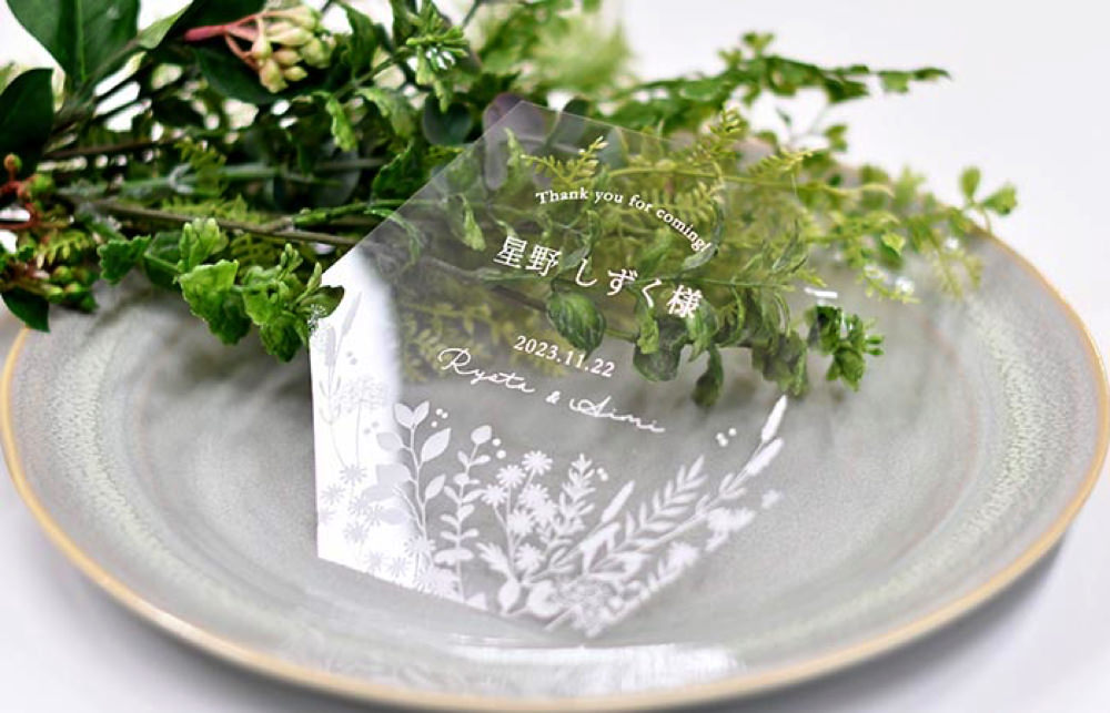 そんな素材の、今だから取り入れて欲しい結婚式アイテムが実は感染対策に関するペーパーアイテムです。これからの新様式の結婚式に取り入れていただきたい「おもてなし」の心を込められるクリア&トレペ素材アイテムをご紹介します♡