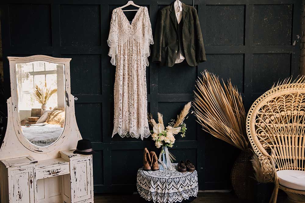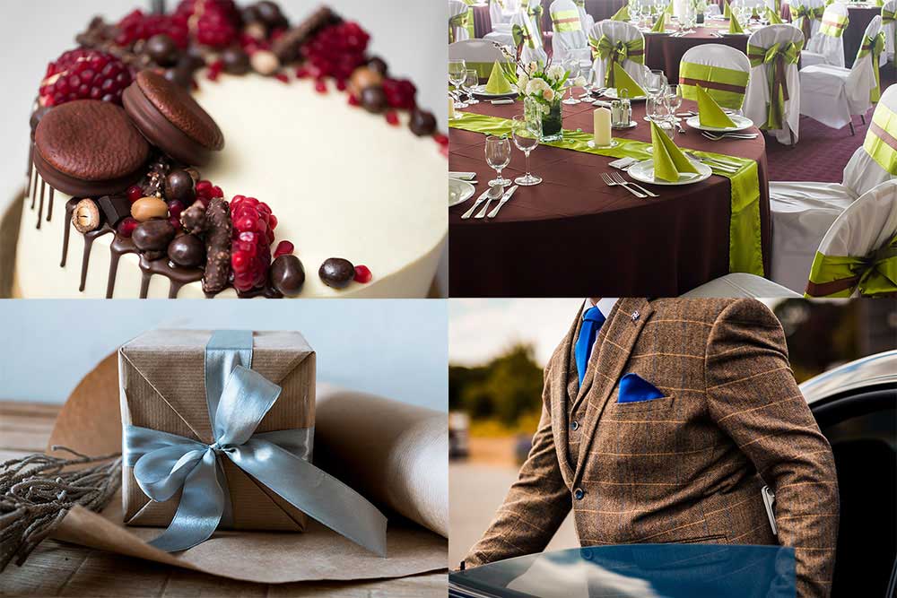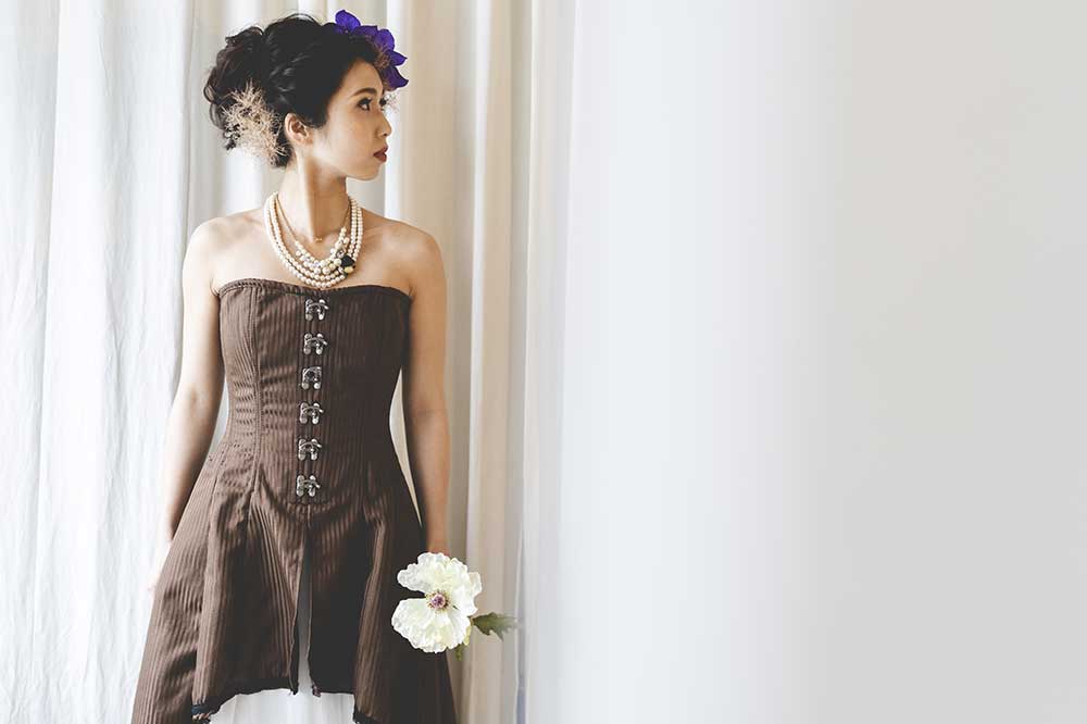 会場装飾はもちろん、お二人の衣装にブラウンを選んでみるのもいいですね。大人っぽくてクールな雰囲気ですが、暗めの色でも、黒より柔らかく温かい印象になるのでオススメです。