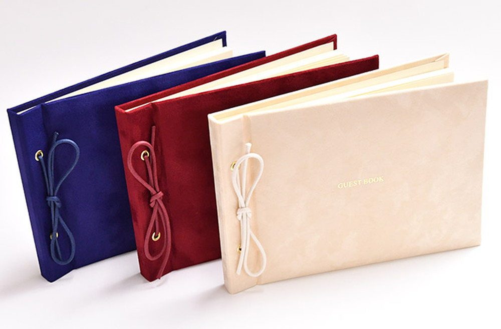 当日受付で記帳してもらう芳名帳。当日の記帳と住所録としての利用と割り切れば、予算をかけずに用意できるアイテムです。