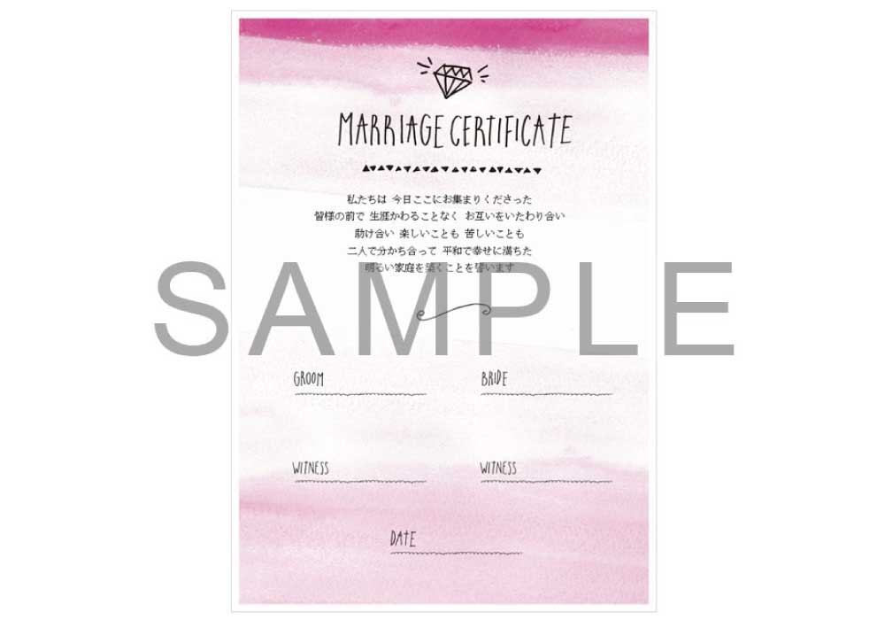 結婚証明書も手作りができるアイテムの一つ。アクリル板を使ったり、ドライフラワーを使ったり・・・SNSを見ていても、手作り?!と目を疑うくらいオシャレな結婚証明書を作っている花嫁さんがたくさんいます。100円ショップなど、身近なお店で手に入る材料で作れたりするので、色々リサーチして手作りを頑張ってみては?テンプレートを無料でダウンロードできるサイトもあるので、フレームなどに入れてアレンジしてみるのもいいですよね。