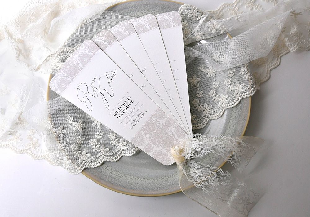 こちらのうちわ席札は、オプションでメニューの追加も可能。これ1枚でおもてなし演出として席札としてメニュー表として3役叶うスグレモノ!