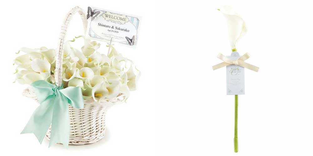 ゲストの人数が多めの方は、60本セットのこちらはいかが?スタイリッシュな雰囲気がブーケやテーブル装花でも人気のカラーのお花は、凛とした印象に。バラやヒマワリなど定番のお花のペンは見たことがあるかもしれませんが、カラーのペンはなかなか珍しいと思います。