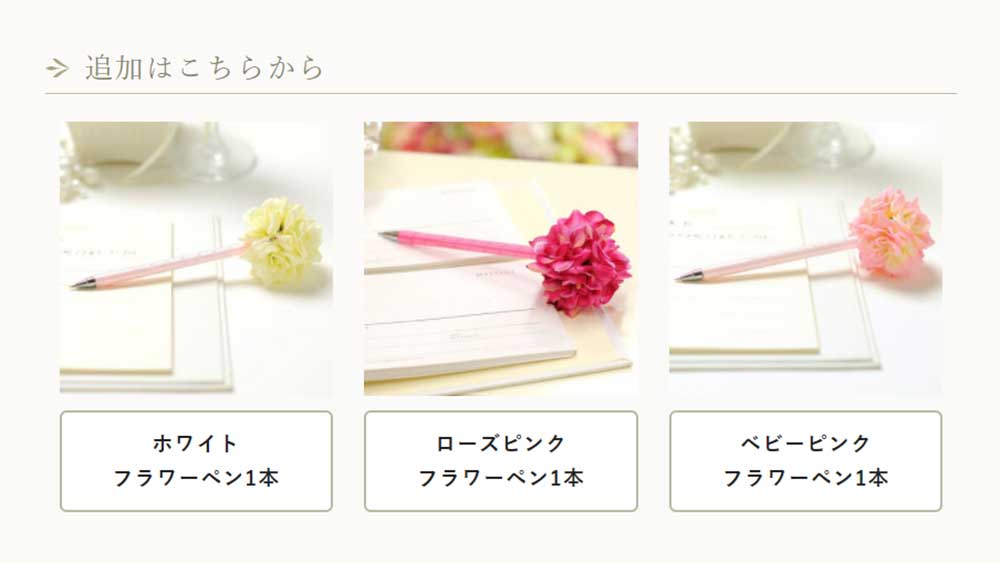 参考:ホワイトフラワーペン(1本)/ローズピンクフラワーペン(1本)/ベビーピンクフラワーペン(1本)