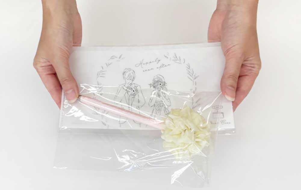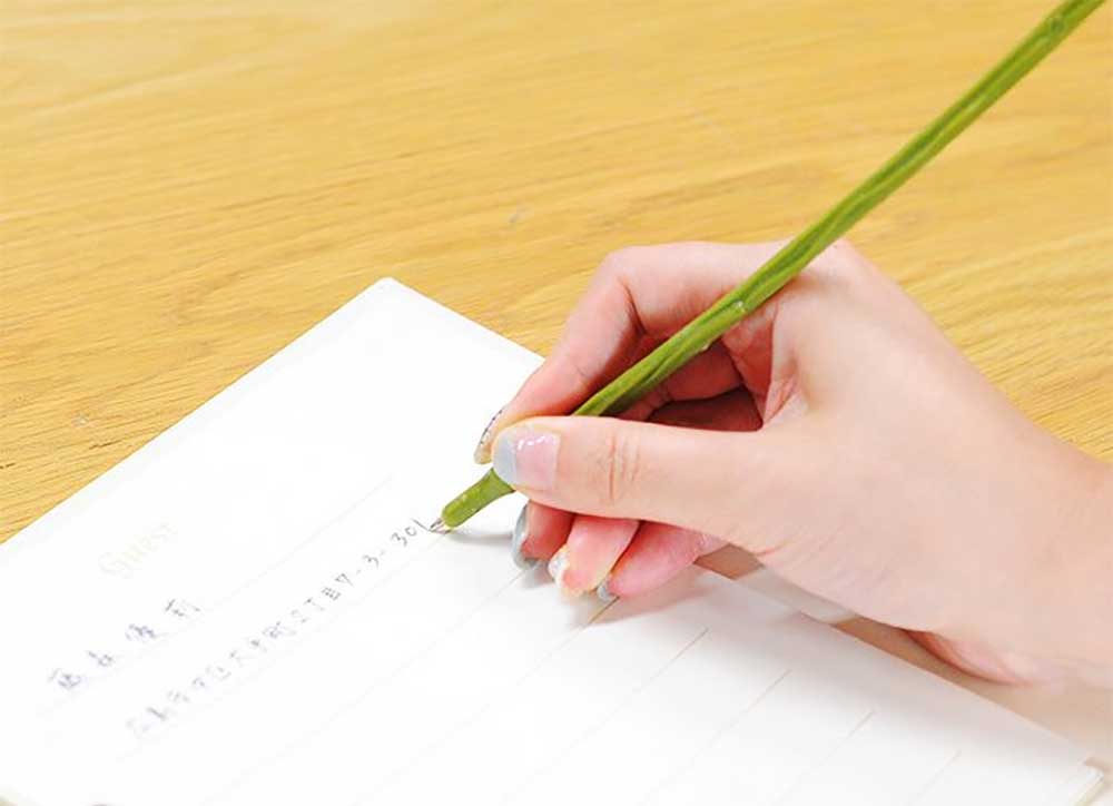 先ほどご提案させて頂いた通り、「ペンの使いまわしをやめる」という感染対策アイデア。こちらを実現するためには、ペンをゲストの人数分準備しておく必要がありますよね?良く見かける事務用の黒ボールペンだと、なんだか味気ないですし、、、かと言って、雑貨屋さんでオシャレなペンを購入してプチギフトとして配るのもなんだか違う。。。