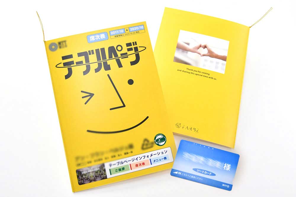 みなさんも一度は目にしたことがあるあの冊子と、昔懐かしいテレホンカードを模したペーパーアイテムなんです!「テーブルページ」とタイトルがついた冊子は、中身は席次表&プロフィールブックになっているそう。こんな感じ↓