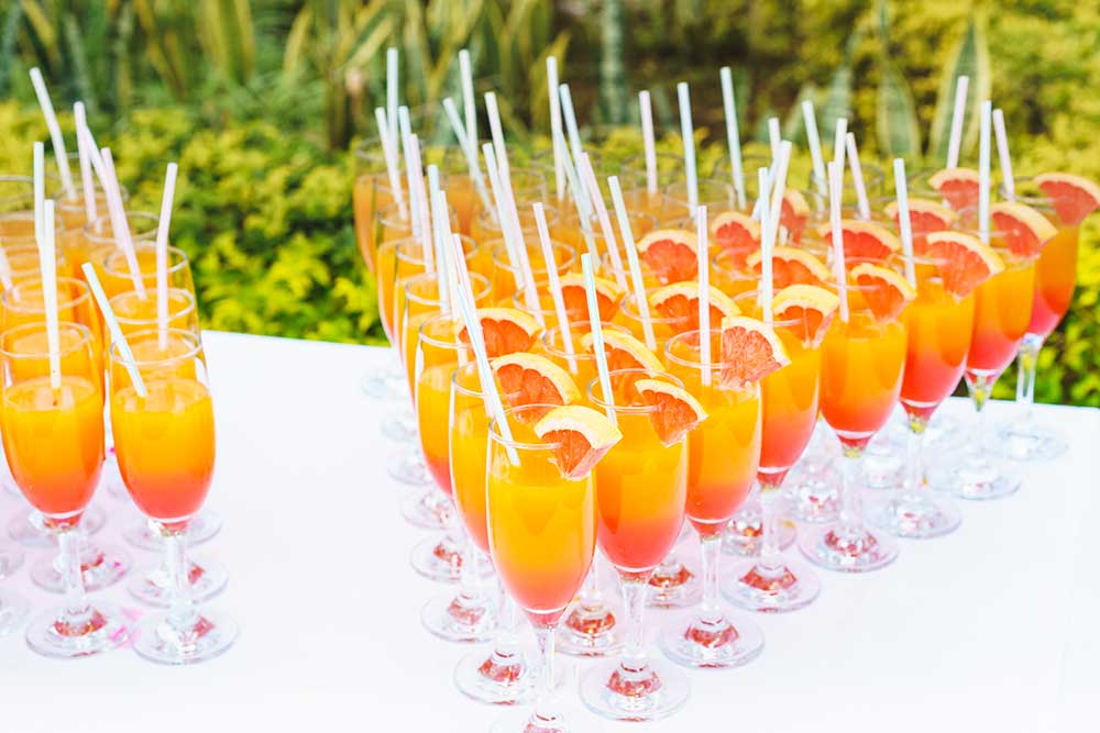 オレンジというと、色以外でパッと思い浮かぶのはフルーツのオレンジ。見た目の色も華やかですが、フレッシュで爽やかな香りのおもてなしもゲストにも好印象。ウェルカムドリンクなどで準備してみるのがオススメ。