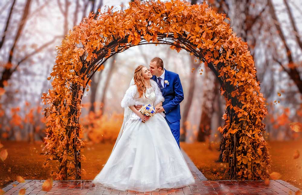 秋婚の特権!オレンジ色に色づく景色を味方にして
