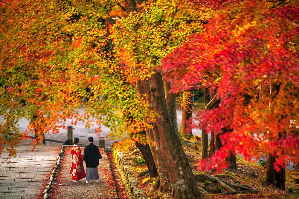 もちろん和の雰囲気にもピッタリ!この雰囲気を撮影しておきたいから…と、あえて秋に和装の前撮りをするというカップルもいるほどです。和装✕紅葉の前撮りフォト、憧れちゃいます♡
