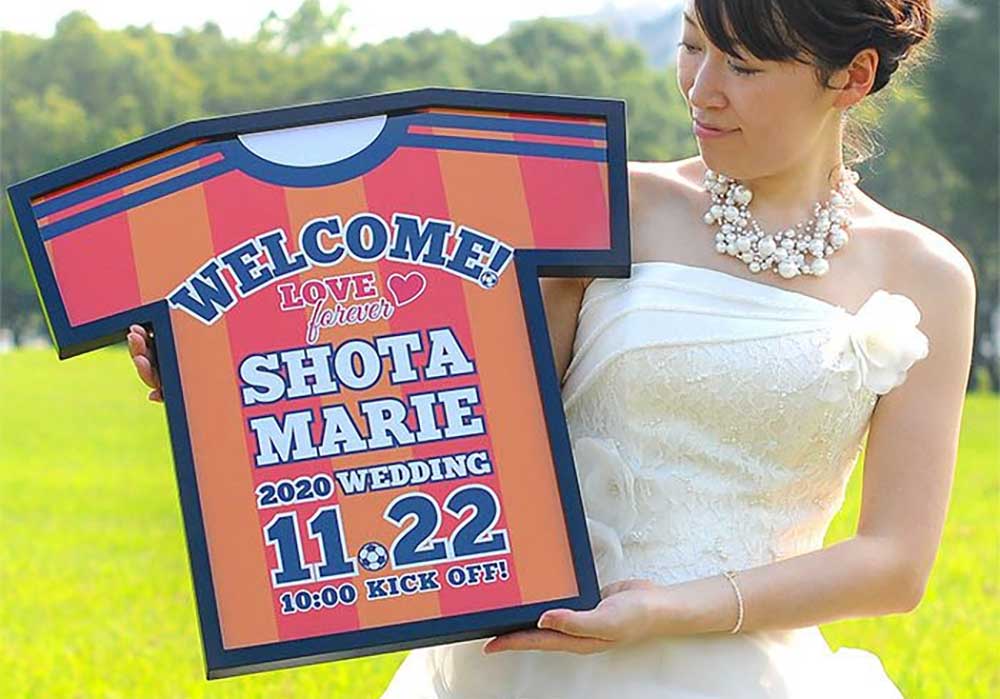 カタチがTシャツ型というユニークなウェルカムボード。受付にユニフォームを飾っているみたいでインパクト抜群!