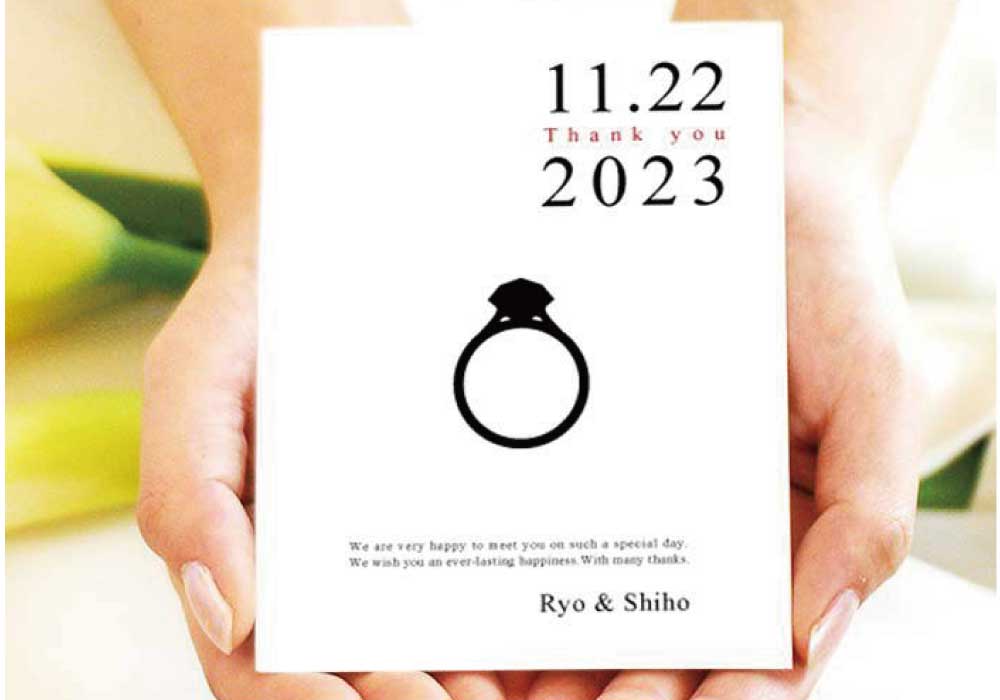 こちらはリングのイラストがオシャレな中身が選べるプチギフト。中身にカイロが選べるので、これから寒い季節の結婚式にも有難いプチギフト。寒い中来てくれたゲストへのちょっとした心遣いになります。
