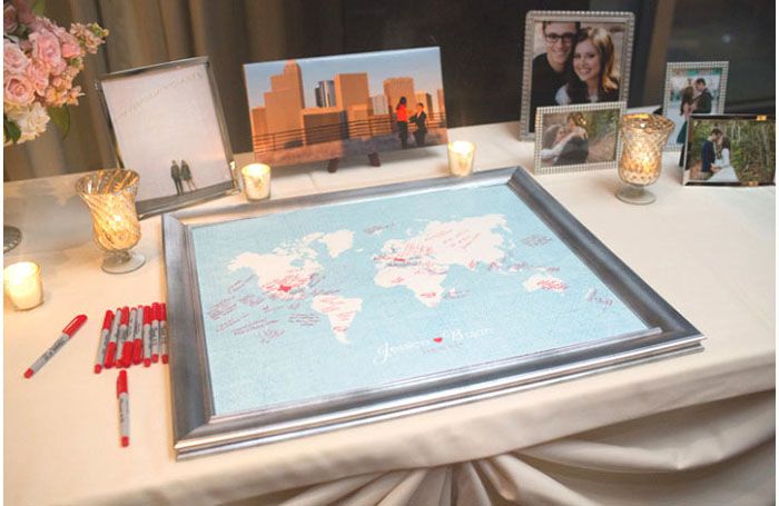 世界中に友達がいるなら世界地図の出身国あたりにサインするなんて演出はいかが?または行ってみたい国はどこですか?行きたい箇所にサインくださいと一言コメントを添えおいておくなど、出席確認の芳名録プラスでユニークな演出アイテムとして是非活用してみて♡