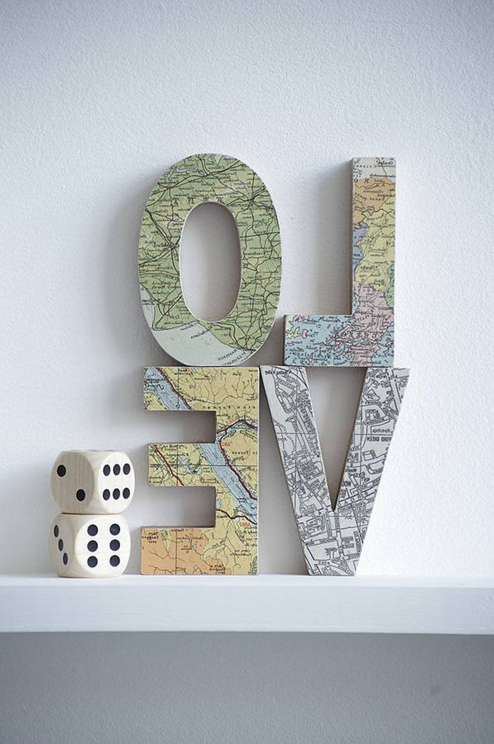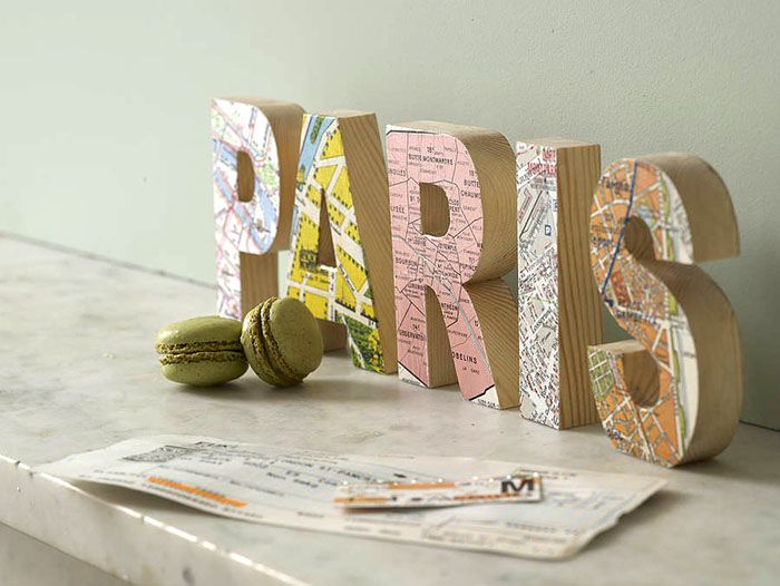 地図付きイニシャルオブジェはとってもオシャレですが、既製品はなかなか国内で販売されてないかも!?地図ペーパーを張り付けてDIYしちゃうのもありかも♡