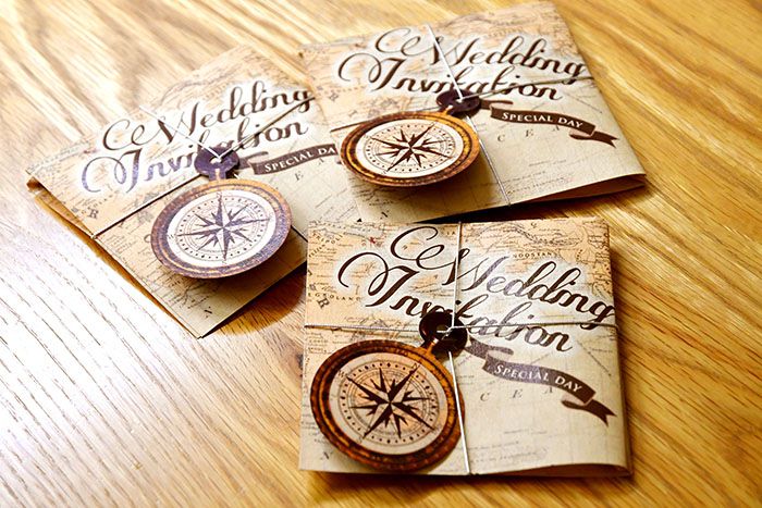 こちらは方位磁石のタグがついたinvitation card。正方形でコンパクトサイズがめずらしいので、届いた瞬間ゲストもびっくり。