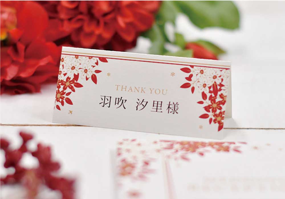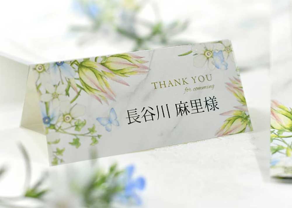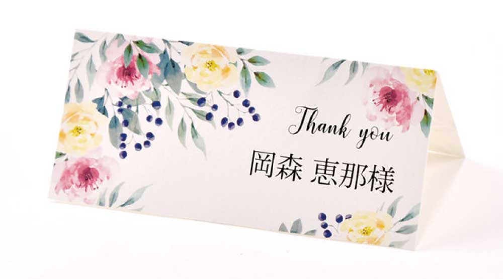 グリーンが差し色で入っていると、大人っぽい印象になります。淡い色合いの席札ならどんな色のお皿やクロスにも合うので、おすすめですよ。