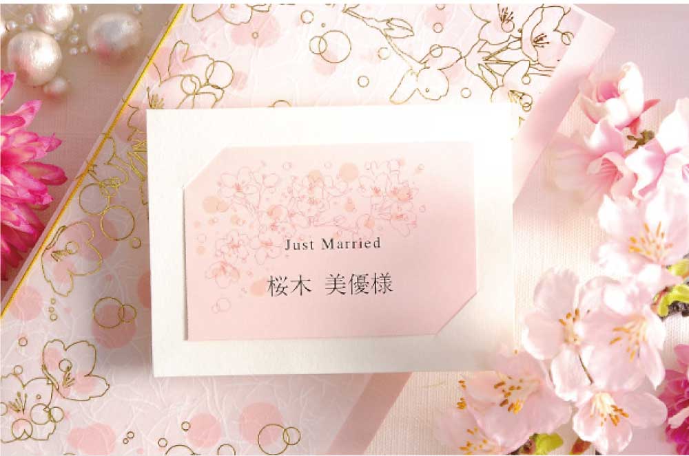 桜といえばやっぱりピンク!桜柄がプリントされたピンク色の席札なら、可愛らしく華やかなテーブルを演出してくれます。