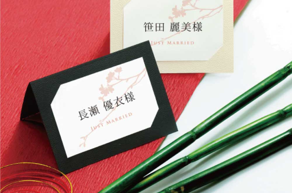 カラーやイラストの雰囲気によっても、色々なコーディネートが楽しめるのが席札。黒や白のシックなカラーと桜のイラストを組み合わせれば、大人上品な春のウェディングにぴったり。