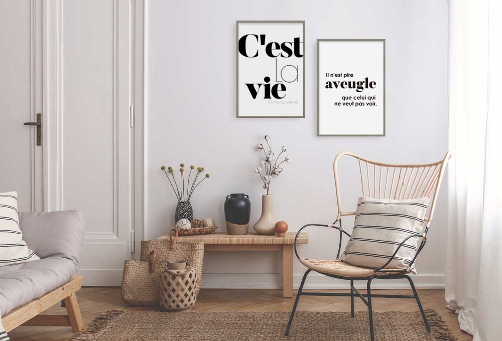 参考:(左)インテリアポスターcest la vie_text003/(右)インテリアポスターil nest_text020