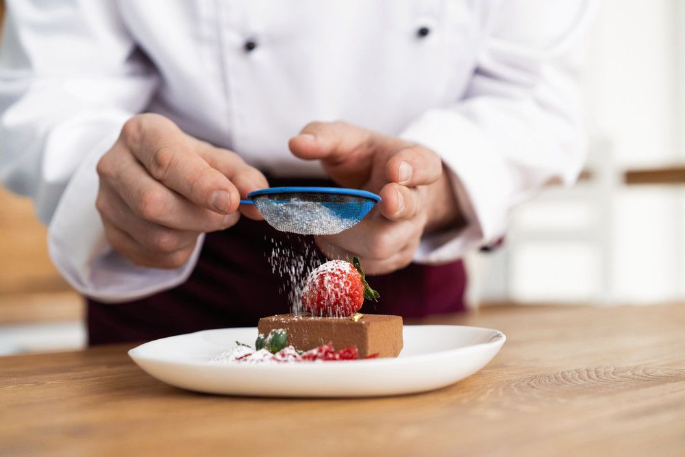 結婚式の料理は、完成したものがゲストの席に運ばれてくるのが基本。しかし、家族婚なら“シェフが目の前で完成させるデザートパフォーマンス”の演出がおすすめです♪完成までの工程を目の前で見られるライブ感と、出来立てを食べられるところが魅力。会場によって可能かどうかが変わってくるので、事前にチェックしておくと◎