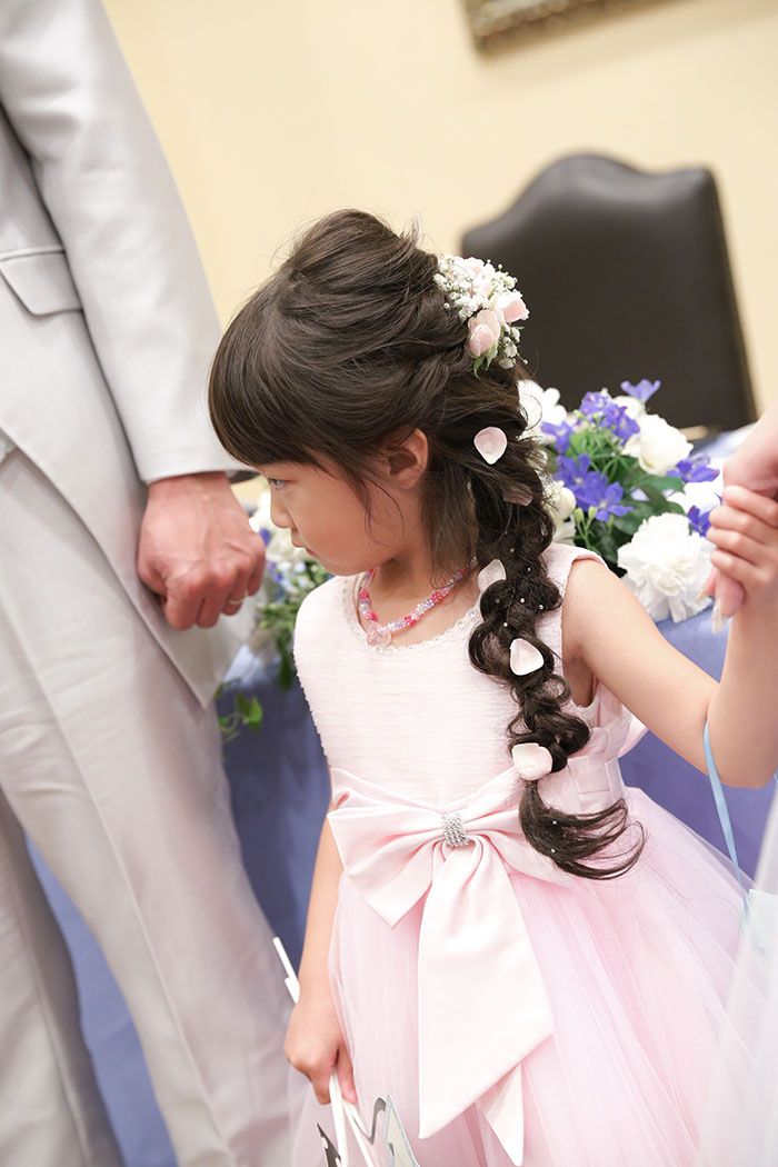 自分たちだけではなく、参加されるゲストを思った演出をたくさん考えられたお二人。可愛い大好きな姪っ子ちゃんとは髪型をおそろいにしてサプライズ登場。