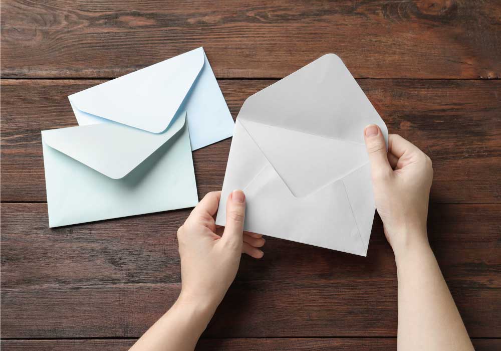 前述の通り封書で送るため、印刷したお詫び状とそれを入れる封筒が必要となります。招待状のようにデザインやリボンなどの装飾に特別こだわる必要はありません。入れる文章も多くはないため、A5サイズを二つ折りしたくらいの大きさが丁度良いでしょう。また、お詫び状は用意する数も多く急いで発送する必要があるため、印刷でかまいません。