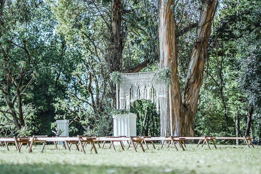 新郎新婦お気に入りの高砂。クッションもタペストリーもDIYされたというから驚きです!ナチュラルなアースカラーでまとめられた植物いっぱいの高砂装飾は、まるで海外ウェディングのワンシーンのようです。開放的な空間が魅力の屋外での結婚式なら、ゲストもリラックスして過ごせそうです。
