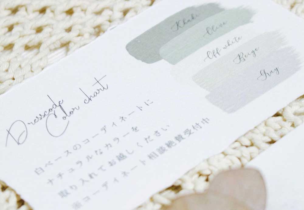 植物園での結婚式ということもあり、「ゲストのみなさんが動きやすいドレスコードを設けた」というY様。テーマカラー「白✖️ナチュラルカラー」とし、あえて主役カラーをゲストにも取り入れてもらい、一人一人が主役として楽しんでもらえたらという想いを込められたそう。素敵ですよね(*^_^*)