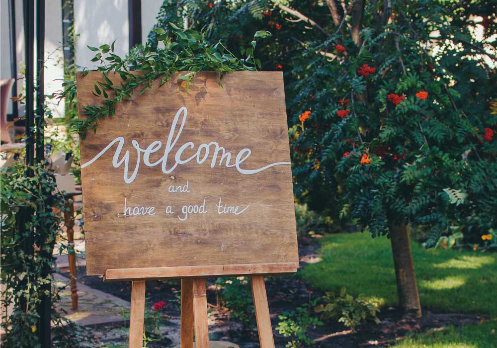 ・Welcome to our wedding reception!「結婚披露宴へようこそ!」