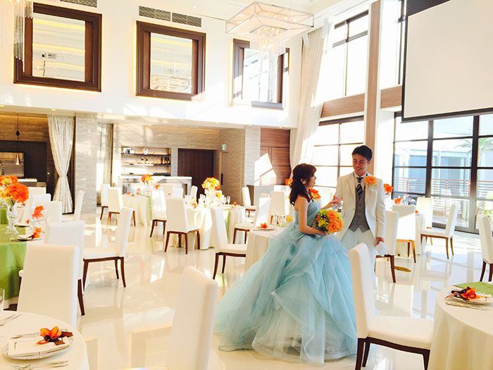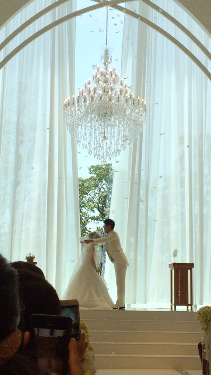 チャペルでの式の最中、天井から天使の羽が降ってきたそう。その瞬間カーテンがオープンし、参列者みなさん「おおおおぉ~」という大歓声。他では見たことのない、感動的な演出だったようです。また、招待した方々が、他の式に参列した人と出会わないようにしてある建物の構造や、新郎新婦は式が終わった後に、部屋に暖かい料理が運ばれてきてゆっくりと食べられる点が実際に体験して、本当に良いサービスで、こんなに素敵な会場、素敵なスタッフさん、たくさんの友達や家族に囲まれて、一日笑顔で過ごせてとても幸せでした!とコメントいただきました♡