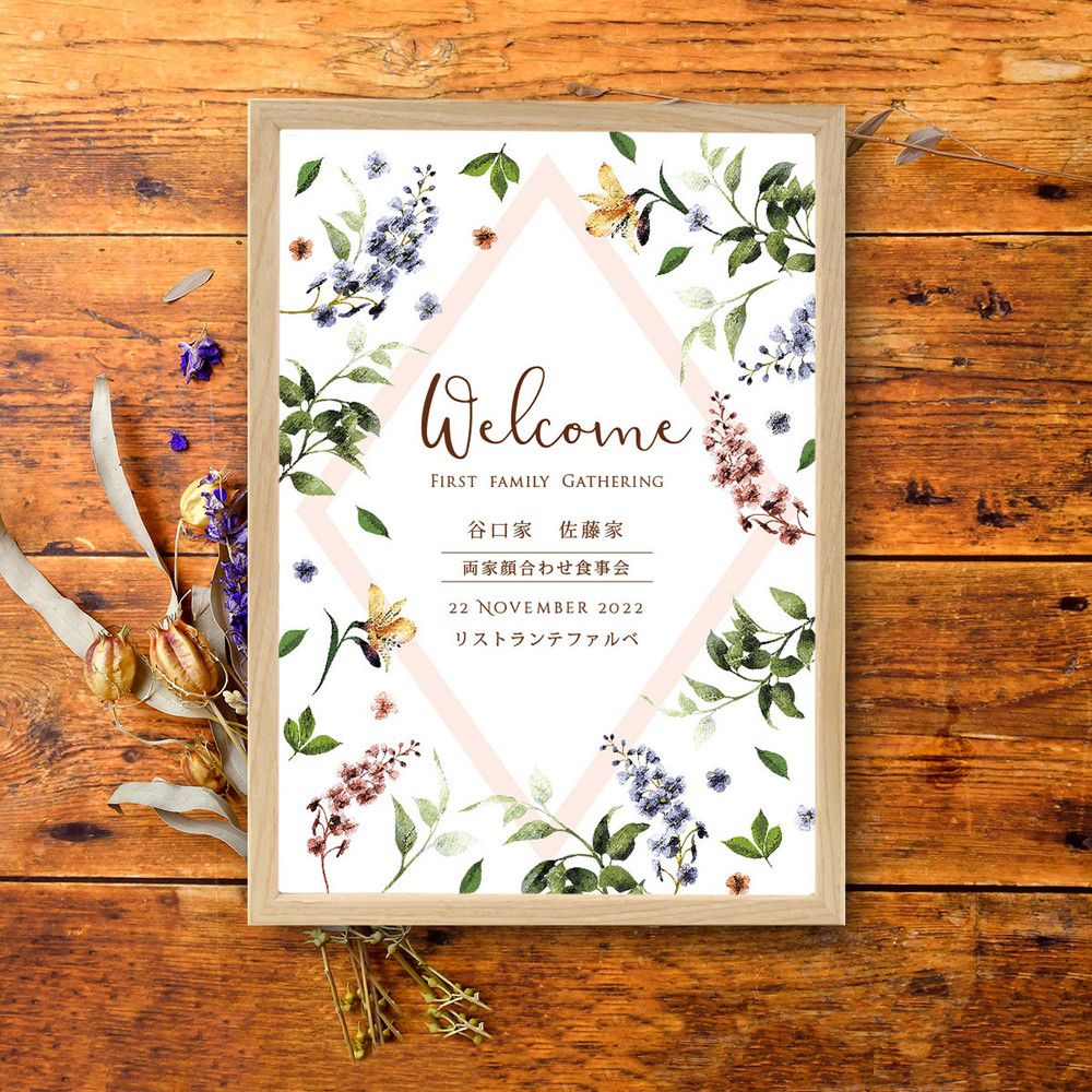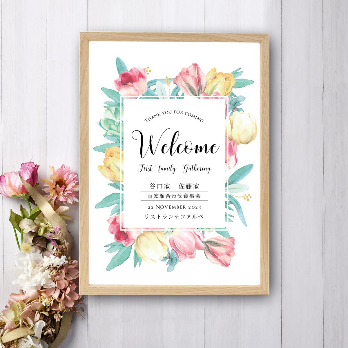 フレーム付のウェルカムボードだから顔合わせ食事会が終わった後は中のデザインシートを差し替えて繰り返し使うことができます!顔合わせ食事会→結婚式のウェルカムボード→新居のインテリアポスターまで、ずーっと使えてとっても便利ですよね♡