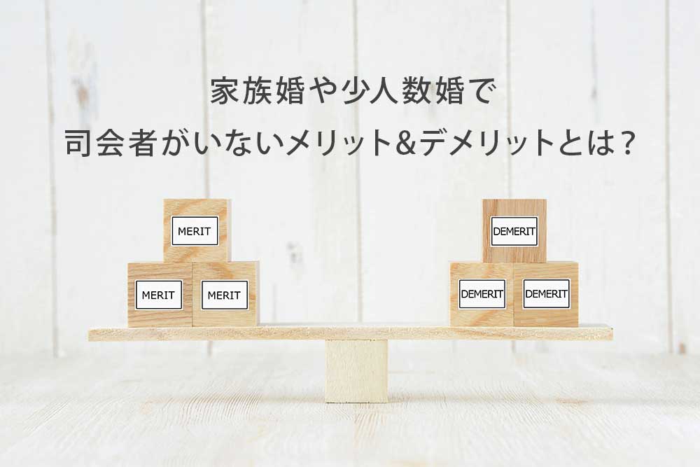 では、家族婚や少人数婚ではどうでしょう。両親と新郎新婦だけ、両親兄弟姉妹と新郎新婦だけなど、ゲストとして身内以外を呼ばない場合などは、司会者は必要なのでしょうか。メンバーも気心が知れた人ばかりなので、司会者がいなくても良さそうな気もしますよね。司会者がいないメリット、デメリットをあげて考えてみましょう。