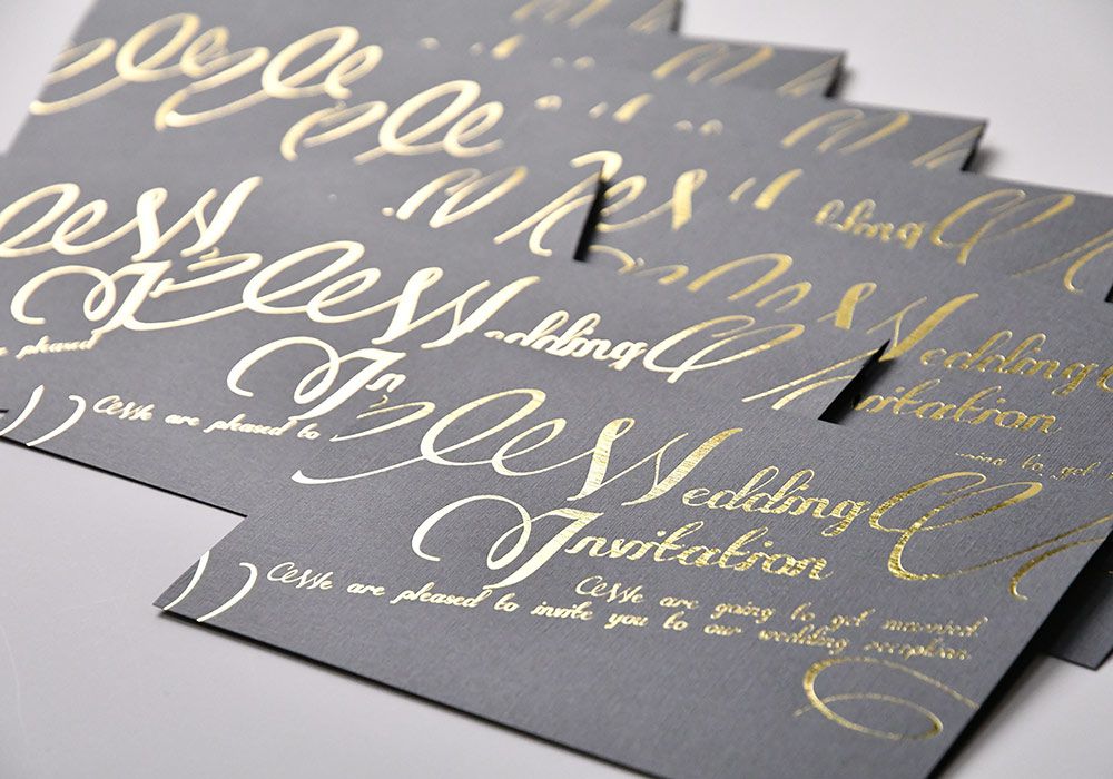 台紙はコシと柔らかさを併せ持った高級紙を使用しており、手に取れば上質な素材感が伝わります。細かく織り込まれた布目のような凹凸が目に美しく、さらりとした手触り。くすんだグレーの色味が上品さをプラスしてくれますね。