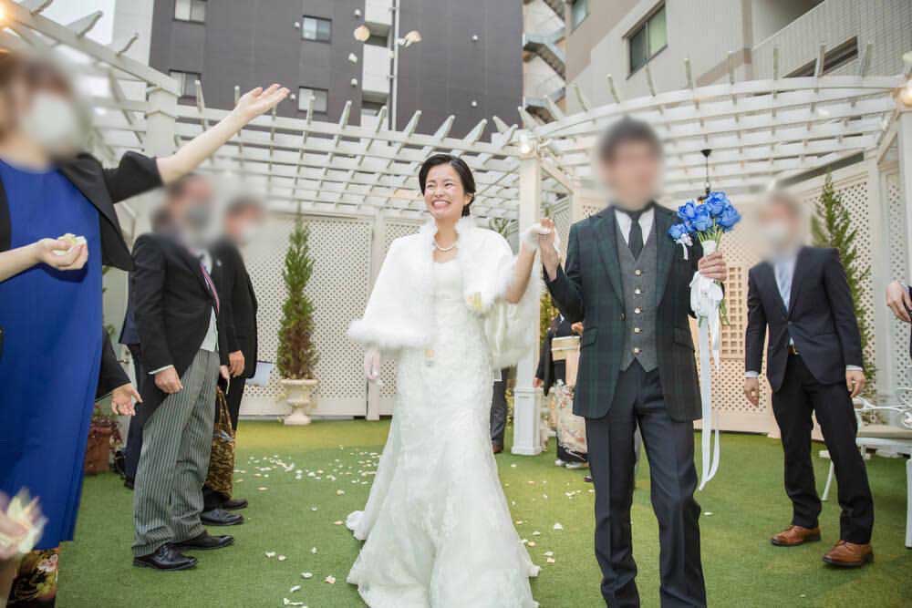 いわゆる「コロナ婚」であり、親族内にも開催を懸念される方がいました。しかし当日終了後、その方からラインで「二人の幸せそうな姿から、私の不安は杞憂であったと思いました」「こうして当日を迎えられて本当に良かったです」という感想を頂けました。他の方からも「楽しかった」「大成功!」など有り難いお言葉を頂けました。このご時世だからこそ、ゲストの皆様には楽しんで頂きたいと思っていたので、とても嬉しかったです!