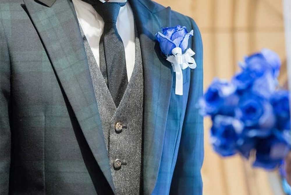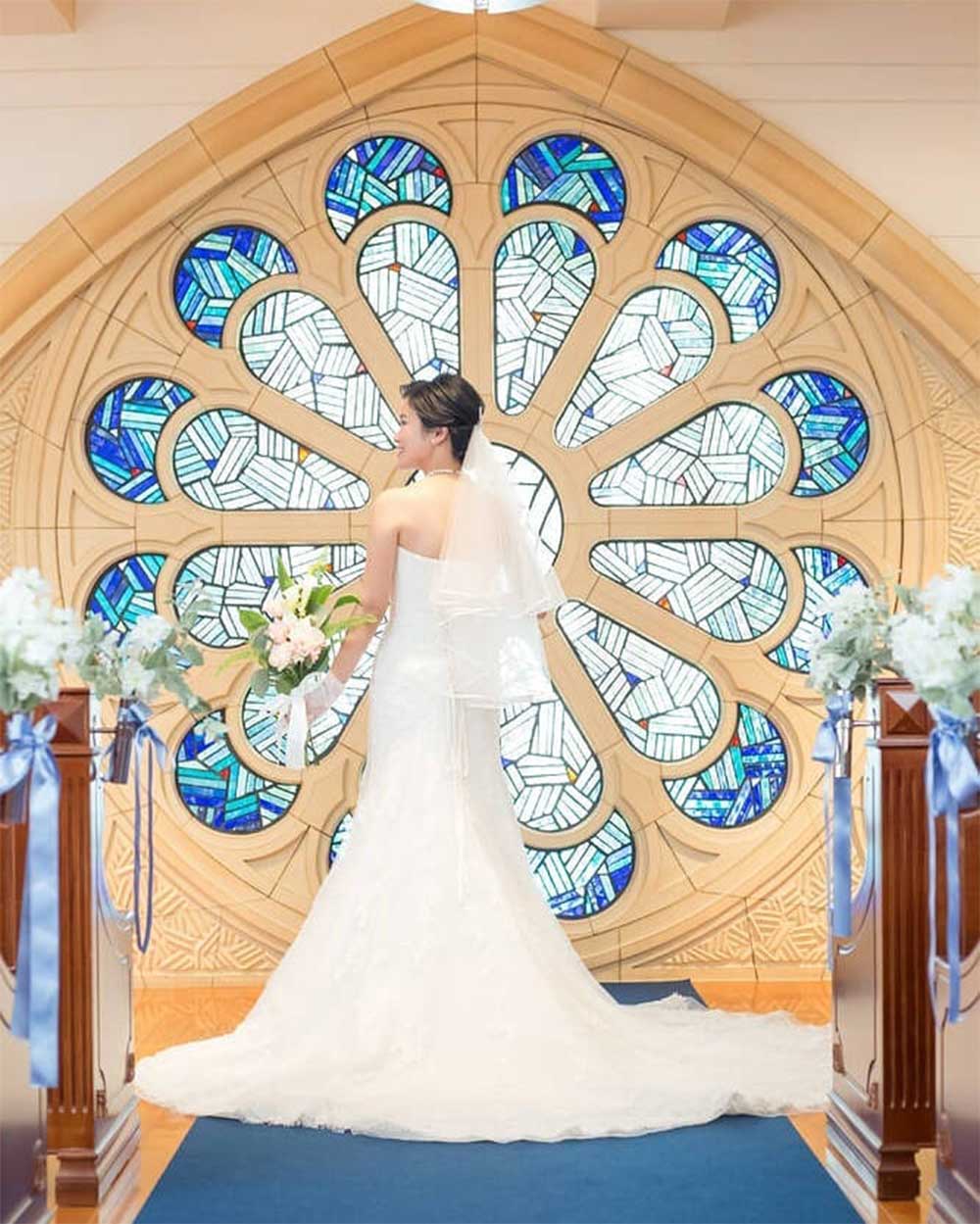 挙式では「ブルーローズセレモニー」の演出を取り入れたそう。挙式の演出として人気の「ダーズンローズ」。新郎がゲストから12本のバラを集めて、新婦へ改めてプロポーズ、OKならそこから一輪取り出して胸に差す…という、とってもロマンチックなセレモニー。ブルーローズが、チャペルのステンドグラスやロイヤルブルーのバージンロードにも映えて、とっても素敵です(*^_^*)