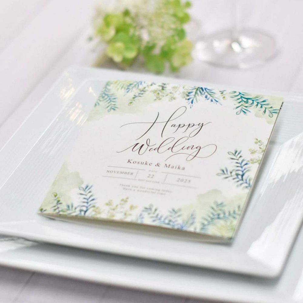 手作りする時間がない…という方に朗報!部数が多くないとオーダーできないのでは?と思われがちな、入力・印刷・仕上げまで全てお願いできる完成品オーダーのペーパーアイテムも10部から注文OKのものがありましたよ!!春らしいグリーンのデザインがさわやか!!