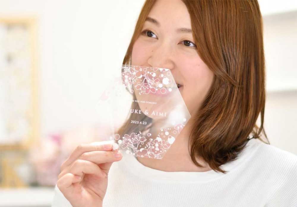 市販のクリアファイルを加工したり、クリアフィルムを切って作成したり、DIYされる花嫁さんもいらっしゃるようですが、「自分で作るのは想像以上に大変だった…」という声もちらほら。それならプロにオーダーするのが、手間もかからず高品質で楽ちんかも♪しかも、春婚の方にピッタリのすごくかわいいデザインのフェイスシールドもあるんです!!!それがコチラ↓↓
