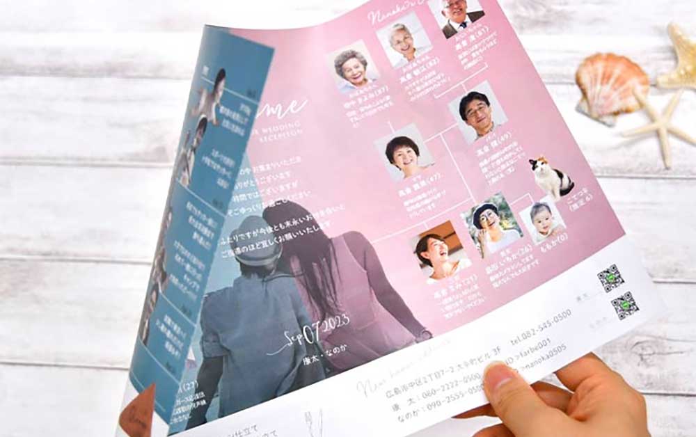 当日使うわけではないので、お二人のなれそめなどを入れたラブストーリーやゲストとして招待するつもりだった方々のお写真を加えて、読み物として楽しめる冊子を作ってみるのも記念になっていいですね!