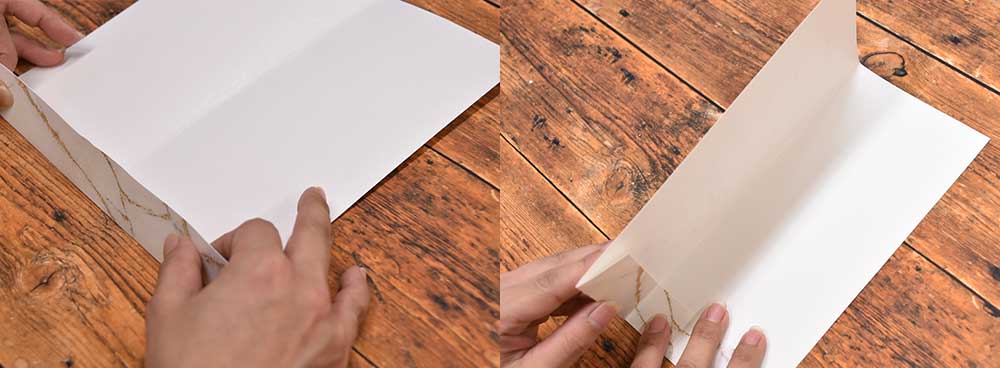 マスクを差し込めるように用紙の下の部分をおりそれを半分におるだけ。マスクケースの作り方画像