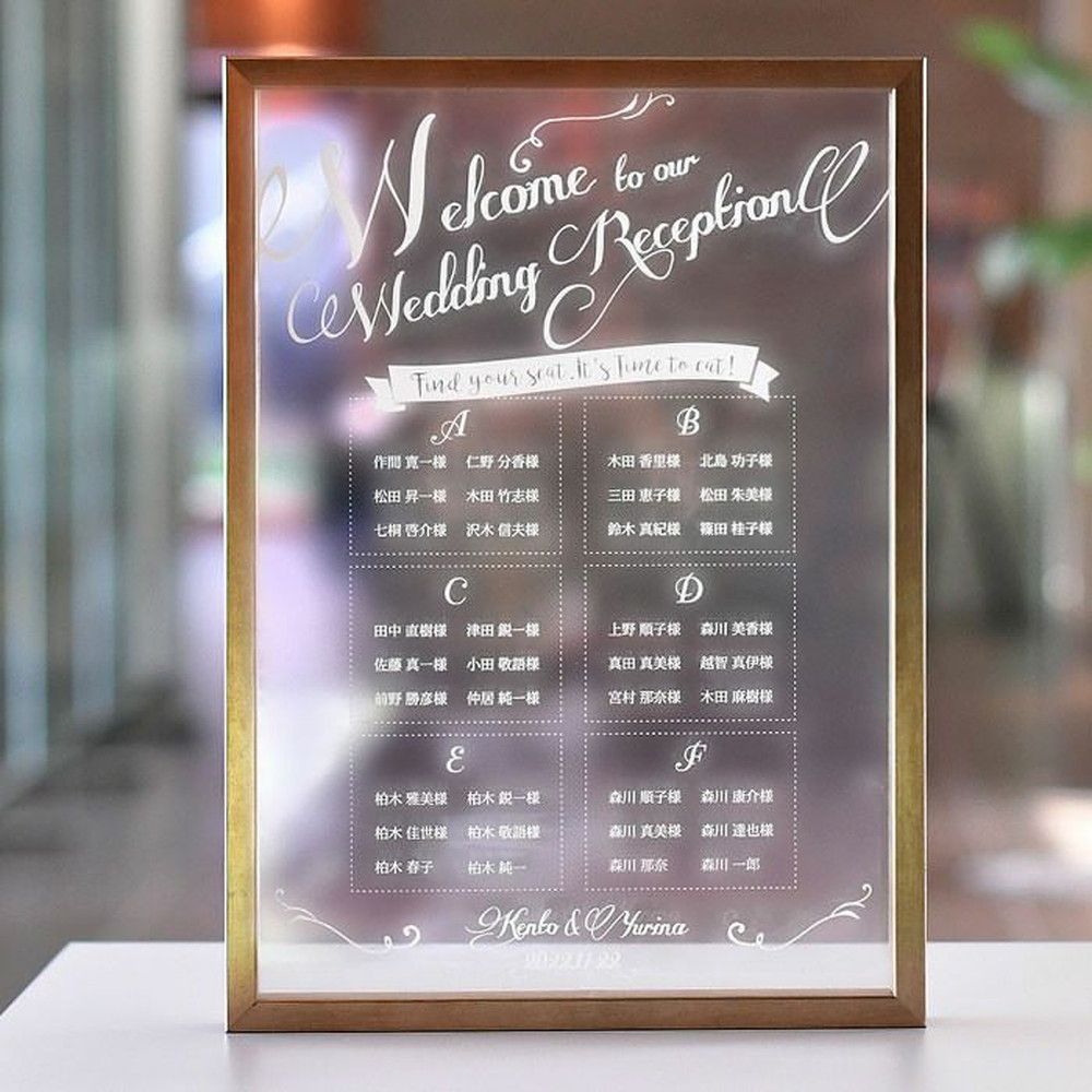 席次表の代わりになるシーティングチャート。自分の席がどこか一目でわかる受付に飾るボードです。
