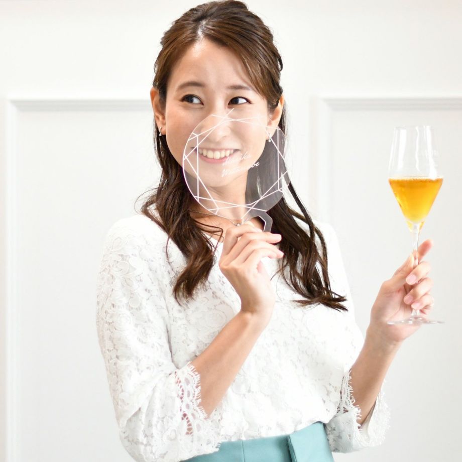 飛沫防止アイテムとして使うウェディングフェイスシールド。透明アクリルなら口元が見えてゲストの笑顔の写真が撮れる。