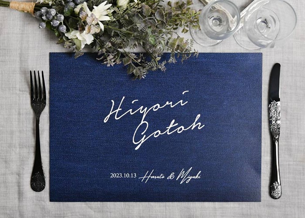 参考:ペーパーランチョンマット席札デザインC【デニム風】/結婚式