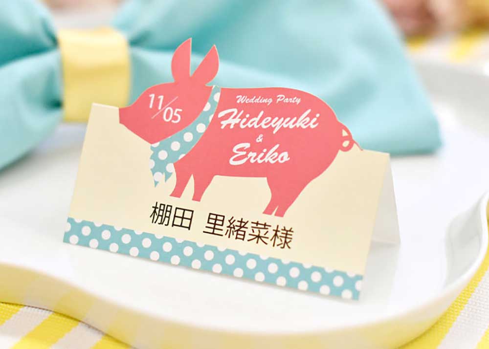 デザインカット席札「ブタ」完成品オーダー(入力印刷込)