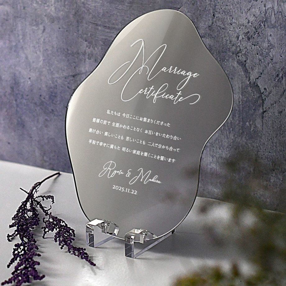 ゴールドの輝きが美しいアクリルミラータイプの結婚証明書です。