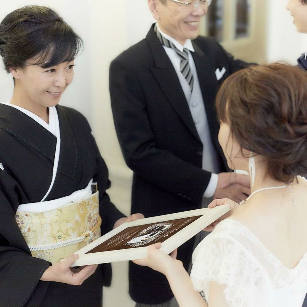「両親ギフトはほかの夫婦とかぶりたくない」「両家である程度そろえたいけれど、全く同じアイテムでは少し味気ない気がする…」そんなカップルには、自分でレイアウトや文章をアレンジできる写真立てや感謝状といったギフトがおすすめです。夫婦それぞれが両親に向けてメッセージを入れたり、写真を入れたりすれば、手作り感とオリジナリティがある両親ギフトになります。