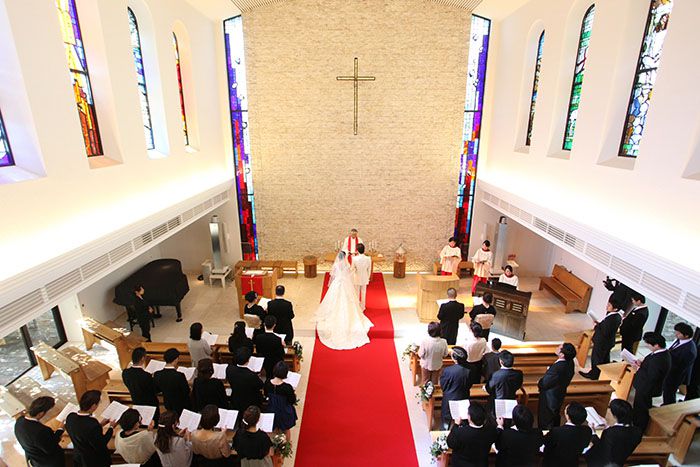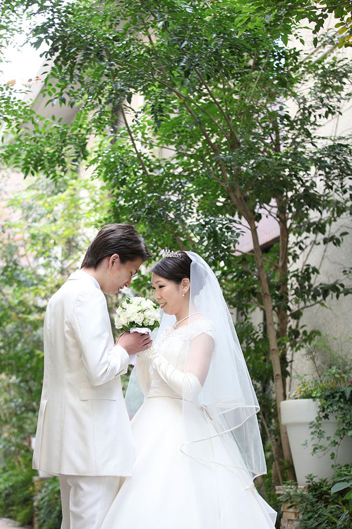 お二人が選ばれた結婚式場は都心にありながら緑豊かな自然の中で過ごせる【メイヤー・ライニンガーチャペル】閑静な目白の街並で70年の歴史を重ねてきた由緒ある礼拝堂がある結婚式場さんです。お二人もここを選ばれた理由として木の椅子のぬくもりと、ステンドグラスから入る光が素敵なチャペルが気に気に入ったからとのこと。そしてチャペルだけでなく、披露宴会場もシンプルで自分たちがやりたいイメージとあっていたそうで、自然の中でくつろぎに満ちた別格の時間を過ごされたようです。