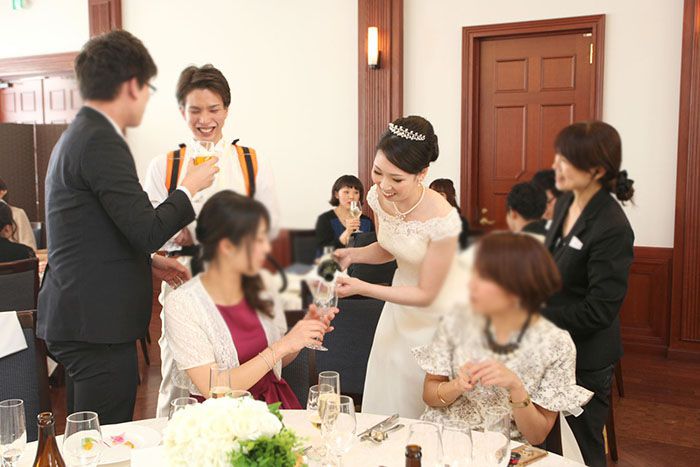 お二人がテーマにされたのはアットホームで笑顔溢れる結婚式♡ゲストに負担をかけないために余興はなしにして、演出はお二人がゲストへビールサーブを行って盛り上げたそう。お酒が大好きなゲストたちは大喜び&大盛り上がり。とにかく、皆と話をしたり、写真を撮る時間を多めに費やされました。